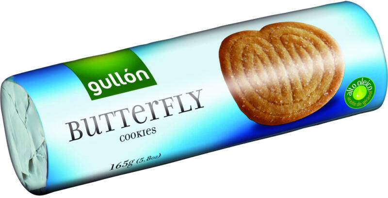 Gullón butterfly keksz 165 g Összetevők: BÚZALISZT, cukor, magas olajsav tartalmú napraforgó étolaj 14,5%, glükóz és fruktózszirup, maláta sziru (ÁRPA, BÚZA), térfogatnövelő szer: ammónium- és nátrium-hidrogén-karbonát, só, antioxidáns: nátrium-metabiszulfit, sovány TEJPOR.