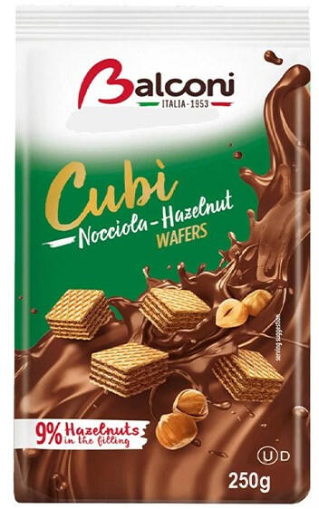 Töltött ostya BALCONI cubi wafers mogyorós 250 g