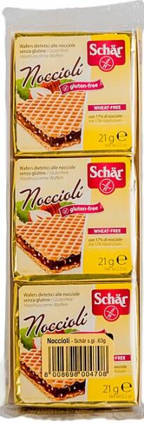 Mogyorós gluténmentes nápolyi. 3x21 g-os gluténmentes ostya; Schär termék a gluténmentes desszertek kedvelőinek.