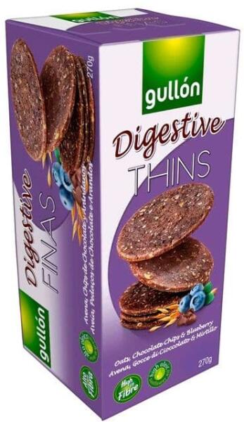Élelmi rostban gazdag digestiv keksz csokoládé darabkákkal és áfonyával.