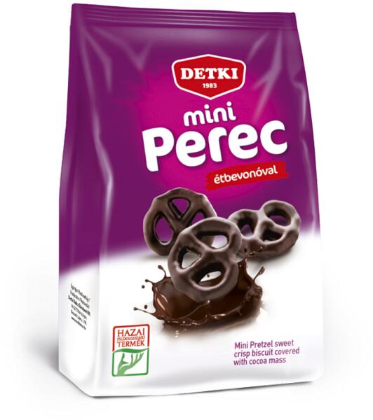 Detki csokis mini perec 160g Hivatalos magyarországi forgalmazótól. Összetevők: Búzaliszt; Kakaós étbevonómassza (30%) [cukor, teljes mértékben hidrogénezett pálmazsír, zsírszegény kakaópor (17%), emulgeálószerek: lecitinek, szorbitan-trisztearát; aroma]; Pálmazsír; Cukor; Glükózszirup; Térfogatnövelő szerek: ammónium-hidrogén-karbonát, nátrium-hidrogén-karbonát; A
