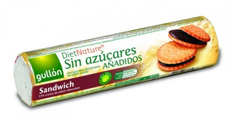 Csokoládé ízű krémmel töltött keksz, édesítőszerrel, hozzáadott cukrot nem tartalmaz. GULLÓN CSOKOLÁDÉS SZENDVICS KEKSZ CUKORMENTES A töltött kekszek szerelmeseinek, finom csokikrémmel töltött, édesítőszerrel édesített, hozzáadott cukrot nem tartalmazó szendvicskeksz. Összetevők: Búzaliszt 43%, Csokoládé ízű krém 37% [édesítőszer (maltit), növényi zsír (pál