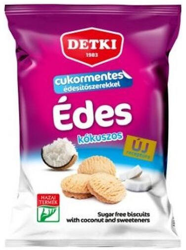 Cukormentes, kókuszos, házi jellegű omlós keksz édesítőszerekkel. 180 g-os cukormentes keksz; Detki termék a cukormentes kekszek kedvelőinek.