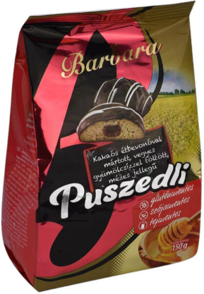 Kakaós étbevonóval mártott, vegyes gyümölcsízzel töltött, mézes jellegű, gluténmentes puszedli, mely nem tartalmaz szóját, illetve tejterméket. Valódi, hazai mézből készült mézes puszedli, melyet vegyes gyümölcslekvárral töltöttünk meg, majd roppanós étcsokoládéba mártottuk. A termék glutén, tej- és szójamentes. Összetevők : lisztkeverék (kukoricakeményítő
