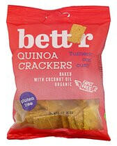 Bettr bio vegán gluténmentes quinoa kréker kurkuma&kömény 100 g Próbáld ki most a gluténmentes összetevőkből, hagyományos módon készült ropogós krékert izgalmas fűszerekkel megbolondítva. Glutén-, laktóz-, tej-, tojás-, szója-, cukor-, mentes és vegán. Összetevők: gluténmentes zabliszt*, víz, quinoa liszt*(30%), szezámmag*(9%), illatmentes kókuszolaj*(9%), lenmag