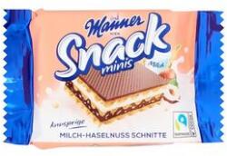 A Manner-szeletek. Snack mogyorós és tejes krém. 25gr x 28db Összetevők: Cukor; Búzaliszt ; Növényi zsírok (kókusz, pálma); Zsírszegény kakaópor (10% a krémben); Sovány tejpor (10%); Mogyoró (9%); Glükózszirup; Teljes kiőrlésű búzaliszt ; Tejszínpor (0,07%) ; Vajzsír; Térfogatnövelő szer (nátrium-hidrogén-karbonát); Étkezési só; Emulgeálószer ( szójalecitin); K