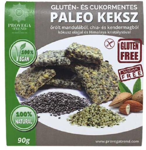 Kendermagból, chiamagból és őrölt mandulából készült, élelmi rostokkal dúsított, élesztő, tartósítószer, és adalékanyag mentes, kókusz cukorral édesített, cukor- és gluténmentes paleo keksz. 90 g-os glutén és cukormentes paleo keksz; Provega termék az egészséges élelmiszerek kedvelőinek.