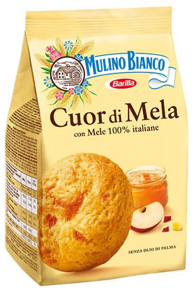 Keksz MULINO BIANCO cuor di mela almás 250g A Mulino Bianco Cuor di Mela keksz ropogós, omlós külsővel és édes almás dzsemmel töltött belsővel rendelkezik. A dzsem kizárólag 100%-ban olasz almából, Emilia Romagna régióból készül. Ez a különleges keksz tökéletes választás lehet reggelihez vagy könnyű snackként egy kávé mellé. Fő jellemzők: Kizárólag természetes