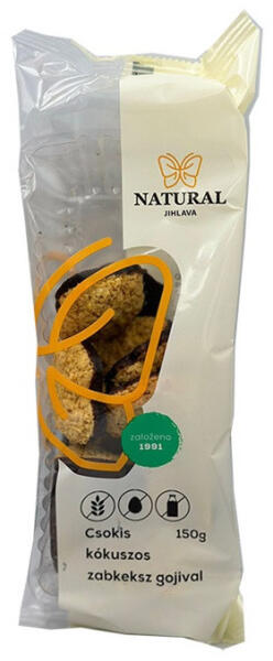 Közvetlen fogyasztásra alkalmas gluténmentes zabkeksz kókusszal és gojival, félig csokoládéba mártva. 100% Plant -Based termék. Közvetlen fogyasztásra alkalmas gluténmentes zabkeksz kókusszal és gojival, félig csokoládéba mártva. 100% Plant -Based termék.