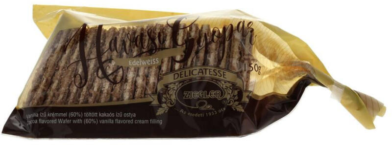 Vanília ízű krémmel töltött kakaós ostya. Eredeti, hagyományos finomság a Zieglertől.
