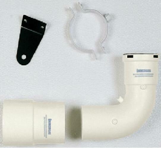 Ø 60 mm-es, induló készlet a kémény bekötéshez, Ø 80/60 mm-es szűkítő idommal, 90°-os ívvel és rögzítő pánttal
