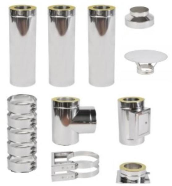 KOMINUS KZD 300/400 mm 4 m magas szerelt, szigetelt kémény KOMINUS KZD gyártmányú 300 mm belső, 400 mm külső átmérővel rendelkező 4 m magas kémény, ahol a béléscső és a köpenycső között 5 cm vastagságú kőzetgyapot szigetelés található. A szigetelt dupla falú saválló acél fémkémény-rendszer alkalmas fa, pellet, apríték olaj és szén üzemű kazánok és kályh