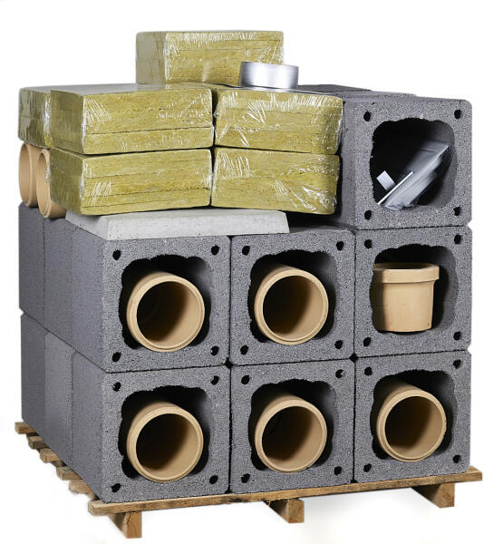 Szett tartalma: -Betonkockák -Egyenes kerámiaidomok -Bekötőidom 1db -Tisztítóidom + ajtó 1szett -Kondenzgyűjtő idom -Szellőzőrács -Ásványgyapot szigetelés -Kéményfedlap + esővédő sapka -Kerámiaidomokhoz ragasztóanyag Csak alsó tisztítónyílással! Betonkocka alapmérete: 31x31cm PGM Minden szilárd tüzelésű fütőberendezéshez, 3 héjú rendszer könnyűbeton köpenyt