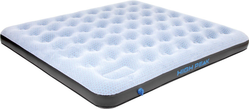 High Peak Air ágy King Comfort Plus 40027, kemping légágy (világoskék/barna) A High Peak Comfort Plus King légágy ideális kempingezéshez és vendégágynak. A beépített lábpumpával szerszám nélkül könnyen felfújható. A felület organikus viszkózból készült, és csodálatos alvási kényelmet és gyönyörű, méhsejt megjelenésű dizájnt kínál. A hídszerkezet stabilizá