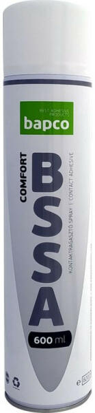 Bapco BSSA ragasztó spray 600mm Polifoam által ajánlott termék! Alkalmas, polifoam anyagok, EVA, PE habok táblák tekercsek ragasztására A felületekre fújja fel a ragasztót, majd 2-3 perc várakozás után illeszthetőek az anyagok. Teljes kötési idő 24-48 óra 110C a hőállósága