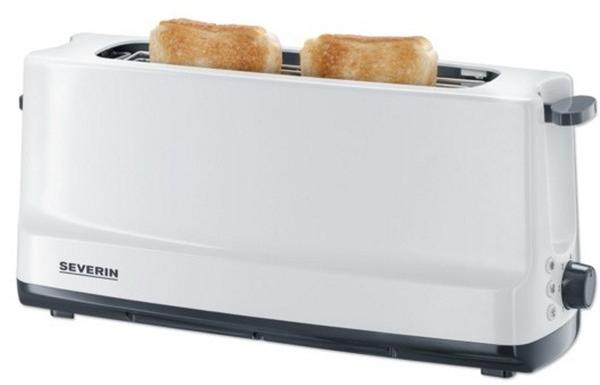 Severin szeletes kenyérpirító , fehér (AT-2232). Két szeletes kenyérpirító Teljesítmény: 800 W Hőszigetelt ház Integrált zsemle melegítő Elektronikus pirítás szabályozás Változó pirítás (kontroll) vezérlés Leolvasztó-gomb jelzőfénnyel Újramelegítés gomb Ciklus közepén töröl gomb Változó szélességű kenyér kezelése Automatikus kikapcsolás Morzsatálca Kábe