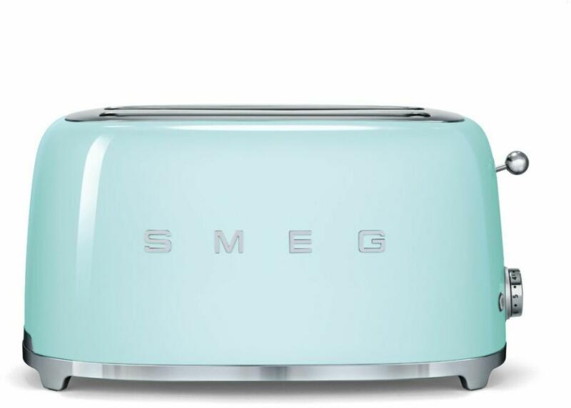 SMEG TSF02PGEU 4 szeletes kenyérpirító, 50-es évek retro design 1500 W-os teljesítmény, acél készülékház, 6 fokozat, újra melegítő és olvasztó funkció, megvilágított vezérlőgombok, 36 mm széles nyílás, csúszásmentes talp, világoszöld színben. Termék mérete: 215 x 394 (410 a gömb fogantyúval együtt) x 208 mm, kábel hossza: 1 m. A háztartás ikonikus darabjai ezek