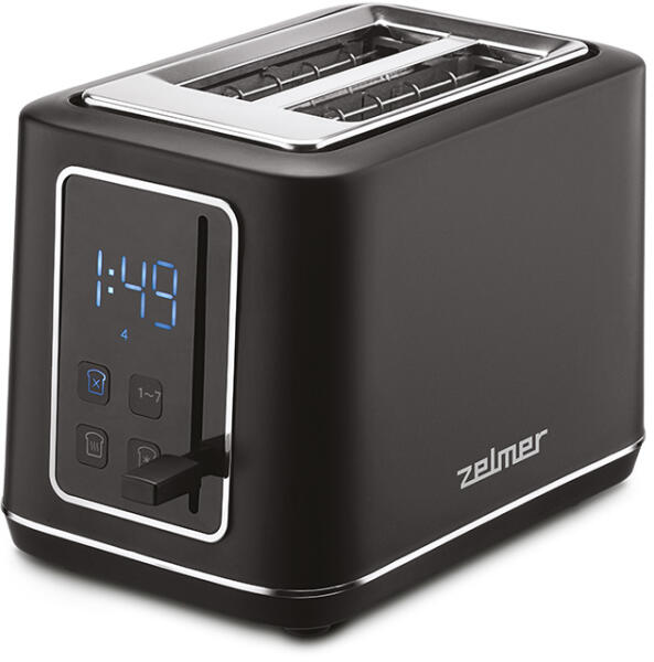 Dizájnos, szálcsiszolt rozsdamentes acél ház 2 szeletes, extra hosszú nyílással minden típusú pirítóshoz, kenyérhez és bagelhez Toast automata motorlifttel Elülső nyílás egy szelet pirítós számára, egyenként is használható LCD kijelző visszaszámlálóval Pontos beállítás 9 barnítási fokozattal Leolvasztás, leállítás és fűtés funkció Tartozék stabil és nagy