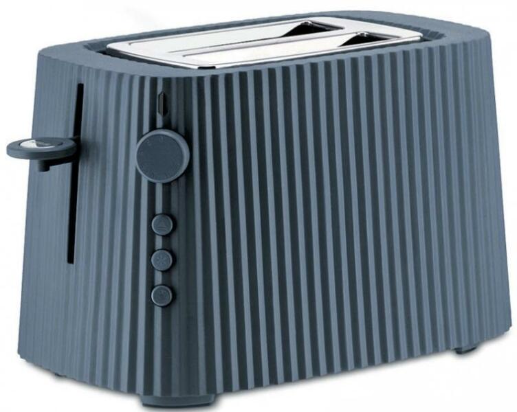 Design kenyérpirító Plissé az olasz iparművészet mestereitől Alessi . Az ötletes plissé kivitel, amely egy rakott szoknyára emlékeztet, váratlanul friss megjelenést kölcsönöz a készülékeknek. A kenyérpirító nyílásai és teljes belseje minőségi rozsdamentes acélból készült. A külső borítás kiváló minőségű hőre lágyuló gyantából készült. A kényelmesebb