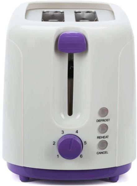 Heinner Charm Kenyérpirító, 750W, 6 pirítási fokozat, Fehér/Lila Kapacitás: 2 szelet Funkciók: kiolvasztás, melegítés, törlés 6 piritási fokozat Kivehető morzsatálca