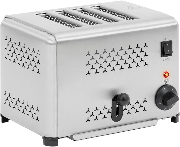 A Royal Catering nagy teljesítményű kenyérpirítója ideális pirítóskészítéshez villásreggelikhez vagy önkiszolgáló éttermekbe, kávézókba, szállodákba, hostelekbe vagy büfékbe. A két üzemmódnak, az 5 perces időzítőnek és a kézi vezérlőkarnak köszönhetően pontosan szabályozhatja a kenyérszeletek pirítási fokát. A forgókapcsolóval kiválaszthatja, hogy egysz