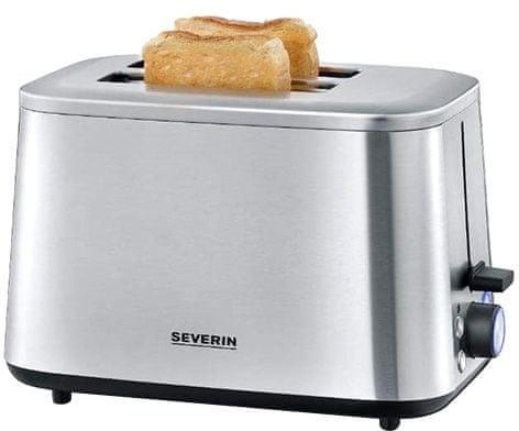 Ebben a 2 nyílású kenyérpirítóban egyszerre 2 szelet kenyeret piríthatsz. A készülék 7 barnítási fokozattal rendelkezik, így a pirítóst a saját ízlésedhez és a különböző kenyérfajták barnítási idejéhez igazíthatod. Amikor a pirítós készen van, automatikusan kilöki a kenyeret és kikapcsol. A biztonságos használat érdekében blokkolásgátló funkcióval, teljes