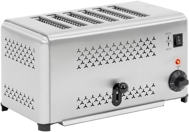 A Royal Catering nagy teljesítményű kenyérpirítója ideális pirítóskészítéshez villásreggelikhez vagy önkiszolgáló éttermekbe, kávézókba, szállodákba, hostelekbe vagy büfékbe. A két üzemmódnak, az 5 perces időzítőnek és a kézi vezérlőkarnak köszönhetően pontosan szabályozhatja a kenyérszeletek pirítási fokát. A forgókapcsolóval kiválaszthatja, hogy egysz