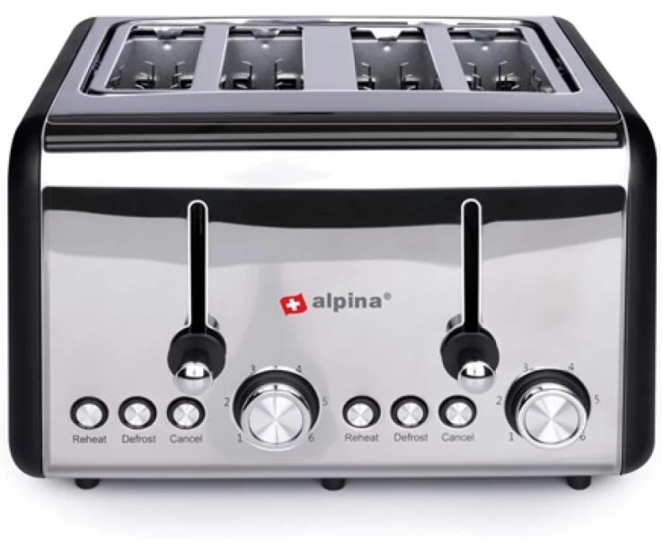 Kenyérpirító 4 szeletes 230V 1500W - Alpina Kenyérpirító 4 szeletes 230V 1500W - Alpina . Ez a szuper, négy szeletes kenyérpirító nagyszerű választás minden konyhába. A rozsdamentes acélból készült készülék nagyszerűen mutat a konyhapulton, így nem kell a szekrény mélyére rejteni minden használat után. A családi reggeliknél végre nem kell kivárni, mire mindenkinek..