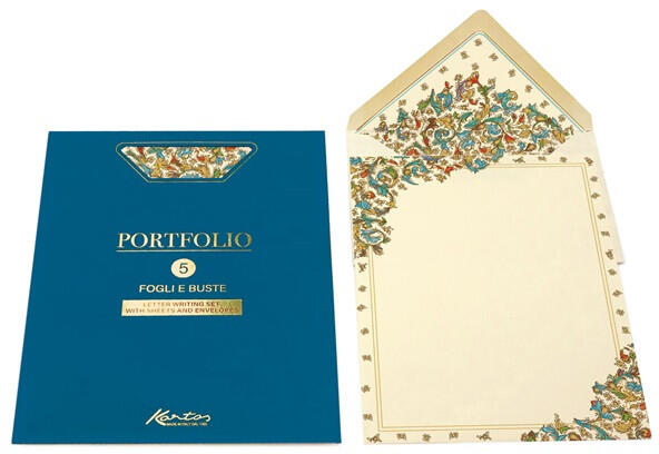 Kartos Medicea dísztasakos levélpapír szett Dísztasakos művészien kidolgozott öt krémszínű lap és boríték hagyományos firenzei mintával és aranypor díszítéssel rendelkezik. A papír tökéletes mind golyóstollal, mind töltőtollal való íráshoz. 95 g/m2 tömegű papír.