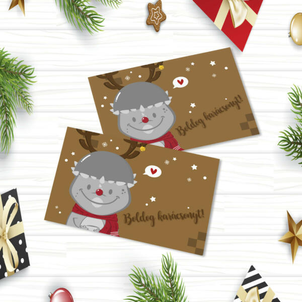 Karácsonyi képeslapcsomag aranyos dínós mintával, Boldog karácsonyt felirattal. A csomag tartalma: 8db képeslap. A mai modern világban sajnos már nem jellemző a képeslapküldés, pedig nagyon szép hagyománya volt az internet előtti időknek. Karácsonyi időszakban az emberek képeslapot küldenek a szeretteiknek, barátaiknak és kedves ismerőseiknek. A képeslapot saját kezűleg