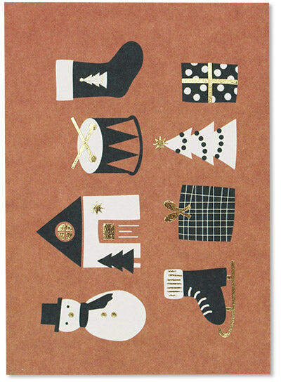 Egy jókívánság, egy kedves üzenet Terrakotta alapon fehér, sötétzöld és arany színekkel díszített minták, amik a karácsonyt idézik. Aranyos kiegészítő bármilyen karácsonyi, Mikulás témájú ajándékhoz. Hátoldala üres, így saját üzenettel teheted még egyedibbé. A vastag kartonpapírnak köszönhetően akár képkeretben is tökéletesen mutat. Sötétzöld, krémfeh