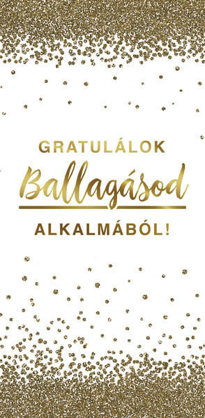 Ballagásra szánt pénz vagy utalvány átadásához használható zsebes borítékos lap . Elején arany metál fólia gratuláló felirattal, a zseben az alkalomhoz illő szép idézettel. Pasztell sárga színű, LA/4 méretű borítékkal. Hajtott lapméret: 108 x 216 mm