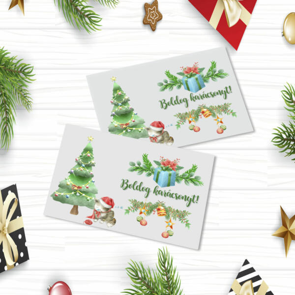 Karácsonyi képeslapcsomag aranyos ünnepi cicával mintával, Boldog karácsonyt felirattal. A csomag tartalma: 8db képeslap. A mai modern világban sajnos már nem jellemző a képeslapküldés, pedig nagyon szép hagyománya volt az internet előtti időknek. Karácsonyi időszakban az emberek képeslapot küldenek a szeretteiknek, barátaiknak és kedves ismerőseiknek. A képeslapot saját