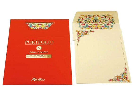 Kartos Florentia dísztasakos levélpapír szett Dísztasakos művészien kidolgozott öt krémszínű lap és boríték hagyományos firenzei mintával és aranypor díszítéssel rendelkezik. A papír tökéletes mind golyóstollal, mind töltőtollal való íráshoz. 95 g/m2 tömegű papír.