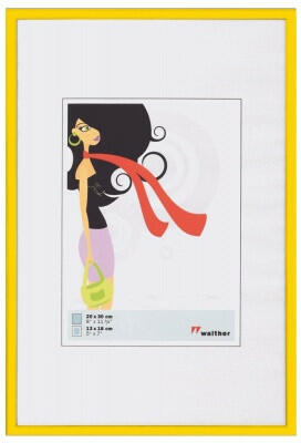 Műanyag keret 30x40 cm-es Sárga szín Fémes festés A keret 30x40 cm-es képhez készült. Vékony, gömbölyű léccel, fémes hatású festéssel. Közepén perforációval, melyet kiemelve a megmaradt rész paszpartuként használható. Hátlapja farostlemez. Álló és fekvő helyzetben akasztható elhelyezéssel. Sárga színben.