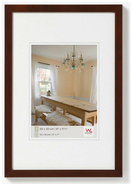 Fa képkeret 21x30 cm-es képhez Mogyoró szín A keret 21x30 cm-es képhez készült. 1,4 cm-es fa léccel, matt festéssel. Közepén perforációval, melyet kiemelve a megmaradt rész paszpartuként használható. MDF hátlappal, kitámasztóval. Felfüggesztést és kép elhelyezést elforgatható bilincsek segítik. Fekvő és álló helyzetben is akasztható. Mogyoró színben.