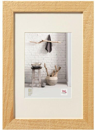 Fa képkeret 13x18 cm-es képeknek Natúr színben 9x13-es paszpartuval A keret különleges erezett fa léccel készült (durva fűrészelt felület, természetes hatás), matt festéssel. 13x18 cm-es képek elhelyezésére szolgál, de a 9x13 cm-es képeknek is tökéletes, ha kihasználja az elefántcsont színű ferdén metszett paszpartut , ami a keret tartozéka Fényvisszaverő üveggel, fa