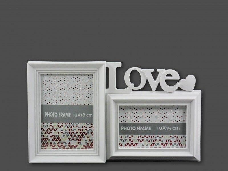Fényképtartó 2db képhez LOVE 37x22cm A-099 - Fényképtartó 1db 13x18cm-es és 1db 15x10cm-es képhez. Befoglaló méretek 37x3x22 cmAnyaga műanyag, üveg