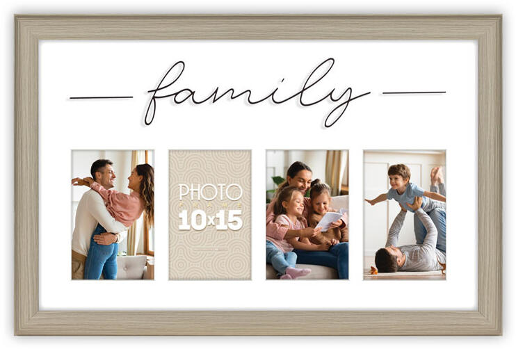 Fa képgaléria 4 darab 10x15 cm-es képhez Falra akasztható Ez a Zep Haifa modern és elegáns képgaléria tökéletes választás emlékeid megőrzésére. A galéria négy darab 10x15 cm-es fénykép számára kínál helyet, keretének letisztult dizájnja pedig bármilyen otthoni környezethez illeszkedik. A "Family" felirat kiemeli az együtt töltött pillanatok jelentőségét, míg a st