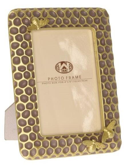 Antik kinézetű, arany színű elegáns asztali képkeret méhsejt mintázattal, méhecskékkel díszítve. 1db 10x15cm-es kép számára. Az antik arany színű képkeret mérete: 15.20. 2,2cm