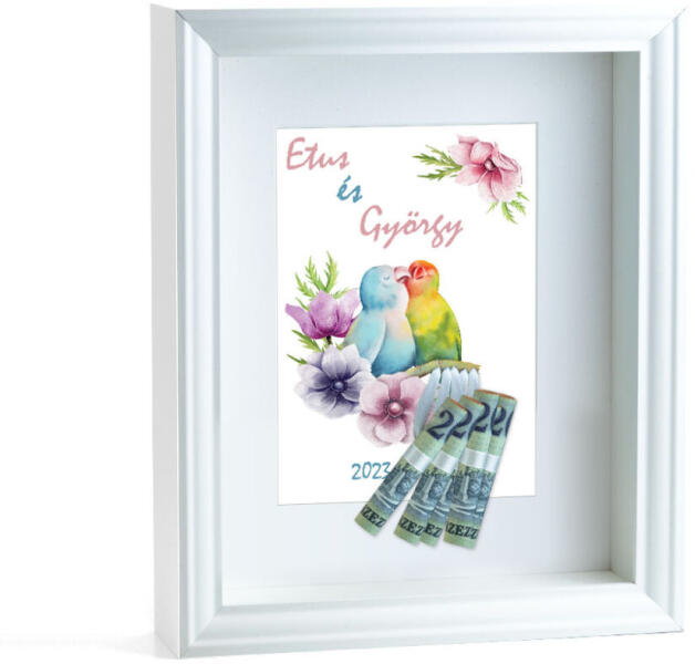Egyszerű és igényes ajándék azok számára, akik nem csak egy szimpla pénzes borítékot szeretnének átadni nászajándék gyanánt az ifjú párnak. A képhez a menyasszony és a vőlegény nevét, valamint az esküvő dátumát tüntesd fel a megjegyzés rovatban. (akár dátum nélkül is kérhető!) Elkészítés ideje: 1 munkanap! Ha nincs ötleted, hogy hogyan adj igényesen és krea