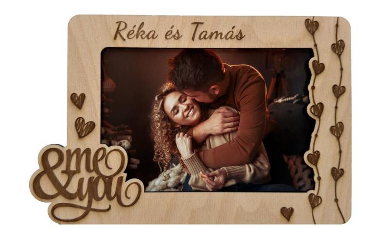 Szerelmes You & Me 10x15 fa fényképkeret egyedi névvel - a Toner webáruház Gravírozás > Képkeret kategóriájában kedvező 6990-os áron. Rendeljen Szerelmes You & Me 10x15 fa fényképkeret egyedi névvel terméket tőlünk gyors kiszállítással!Rögzítsd a szerelmed és az együtt töltött pillanatokat az egyedi gravírozott fa fényképkeretünkkel! Ez a varázslatos ker