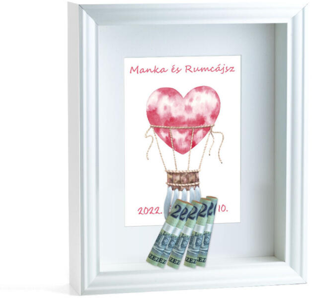 Egyszerű és igényes ajándék azok számára, akik nem csak egy szimpla pénzes borítékot szeretnének átadni nászajándék gyanánt az ifjú párnak. A képhez a menyasszony és a vőlegény nevét, valamint az esküvő dátumát tüntesd fel a megjegyzés rovatban. (akár dátum nélkül is kérhető!) Elkészítés ideje: 1 munkanap! Ha nincs ötleted, hogy hogyan adj igényesen és krea