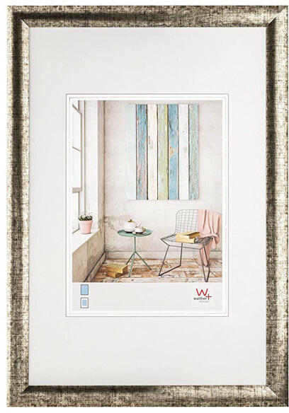 Műanyag keret 60x90 cm-es képhez Paszpartuval 42x59,4 cm-es képhez Bronz szín Fémes festés A keret 60x90 cm-es képhez készült. Vékony, gömbölyű léccel, fémes hatású festéssel. Közepén perforációval, melyet kiemelve a megmaradt rész paszpartuként használható. Hátlapja farostlemez. Álló és fekvő helyzetben akasztható elhelyezéssel. Bronz színben.