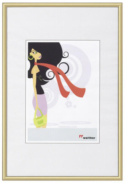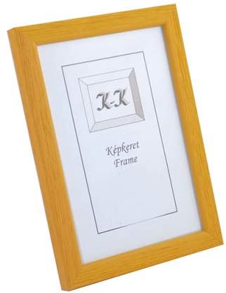Műanyag keret 28x35 cm-es képhez Paszpartuval 18x24 cm-es képhez Arany szín Fémes festés A keret 28x35 cm-es képhez készült. Vékony, gömbölyű léccel, fémes hatású festéssel. Közepén perforációval, melyet kiemelve a megmaradt rész paszpartuként használható. Hátlapja farostlemez. Álló és fekvő helyzetben akasztható elhelyezéssel. Arany színben.