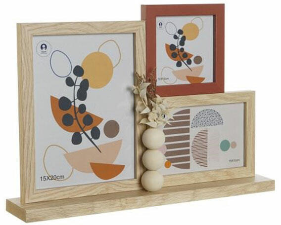 Natur és csodálatos terrakotta színű 3 részes fa képkeret fa vázával és szárazvirággal. A fotótartó mérete: 36x7x26cm.