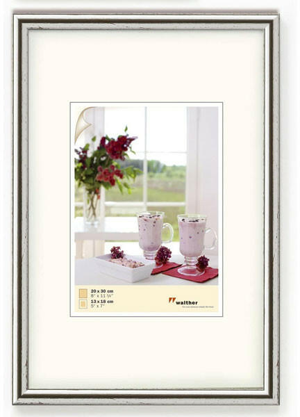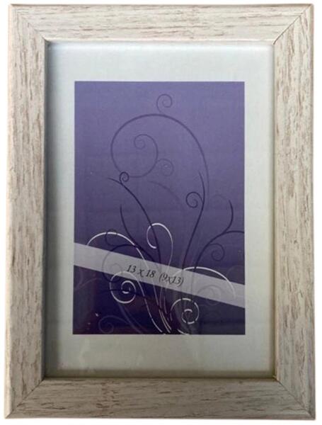 Fa keret 15x20 cm Ezüst szín A keret 15x20 cm-es képhez készült. Vékony, fél kerek léccel, fémes hatású festéssel. Közepén perforációval, melyet kiemelve a megmaradt rész paszpartuként használható. Hátlapja farostlemez, kitámasztóval. Fektethető és állítható, valamint akasztható elhelyezéssel. Ezüst színben.