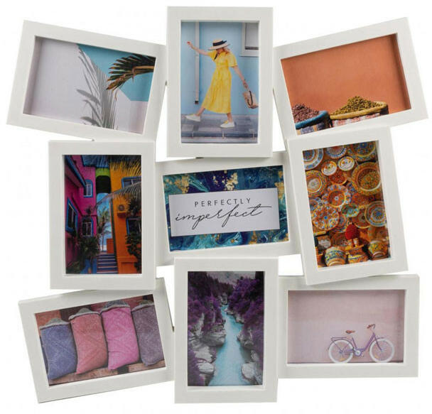 műanyag képgaléria 9db 10x15 méretű képhez fehér színben Henzo DAISY képgaléria 4db álló és 5db fekvő fotó elhelyezésére alkalmas. Hátlapja környezetbarát farost lemez. Falra akasztható.