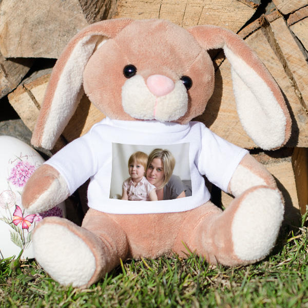 Sokat gondolkodik azon, hogy Húsvétra mivel lephetné meg a gyerekeket?Íme, egy bájos kis nyuszi, ami garantáltan belopja magát a szívünkbe. Ez az ölelni való lógófülű, puha tapintású plüss nyuszi fényképes pólóban csak arra vár, hogy hozzábújj! A fényképes plüss mackó 19cm magas. A pólón elhelyezhető kép mérete kb. 8x6cm.