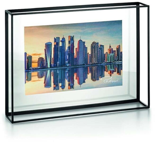 Innovatív, lebegő hatású képkeret két üveglap között, modern geometrikus dizájnnal. A fekete fémvázas keret egyedi módon emeli ki kedvenc 13x18 cm-es fényképeit, és állítható vagy falra akasztható kivitelezésének köszönhetően sokoldalúan használható. Művészi megjelenés modern geometrikus dizájnnalAz Umbra Prisma képkeret forradalmasítja a hagyományos képkeretek